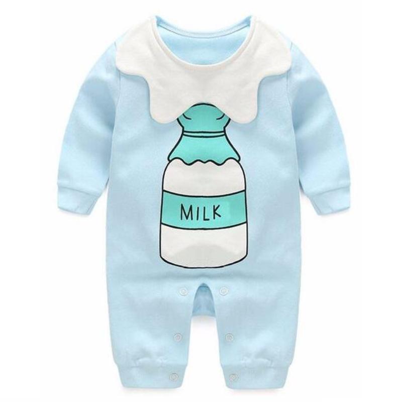 Dress up your chubby cuddly hungry baby in this Milk Bottle onesie for cuteness overload! Your little tot is sure to feel cozy in this cute costume made of warm stuff. This blue/pink colored onesie features a cute Milk Bottle print with cuffed sleeves and leg snaps for easy diaper change.